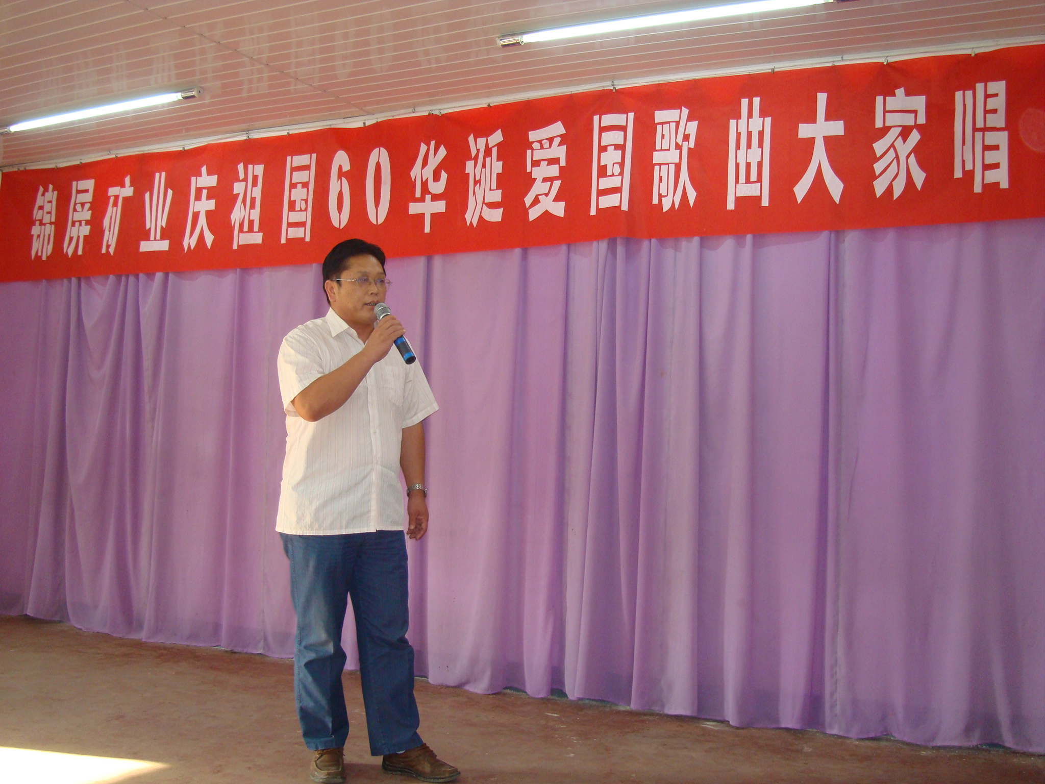 9月29日下午,江蘇錦屏礦業(yè)有限公司 “慶祖國(guó)60華誕愛國(guó)歌曲大家唱”活動(dòng)在中山會(huì)議室舉行,總公司領(lǐng)導(dǎo)和各分、子公司職工一起觀看了這場(chǎng)演出。一首深情的《今天是你的生日》唱響了本次活動(dòng)的主題曲,演員們精彩的演唱感染了現(xiàn)場(chǎng)所有觀眾,大家在歌聲中重溫了一段段難忘的歷史,經(jīng)典的紅歌更激發(fā)了大家的愛國(guó)情懷,現(xiàn)場(chǎng)觀眾和演員一起祝福我們偉大的祖國(guó)繁榮昌盛!國(guó)泰民安!本次活動(dòng)在掌聲與歌聲中取得了圓滿成功!